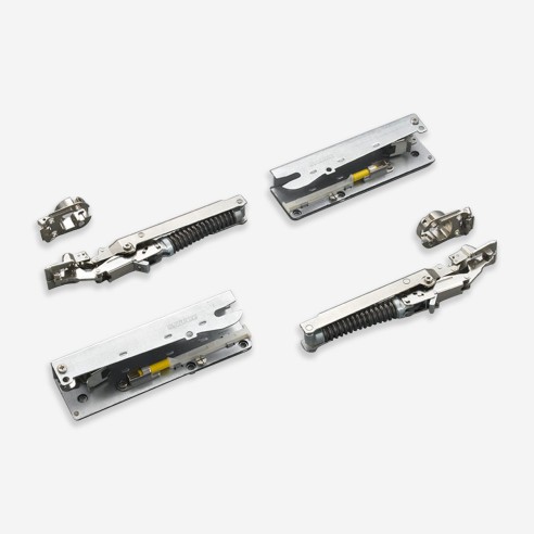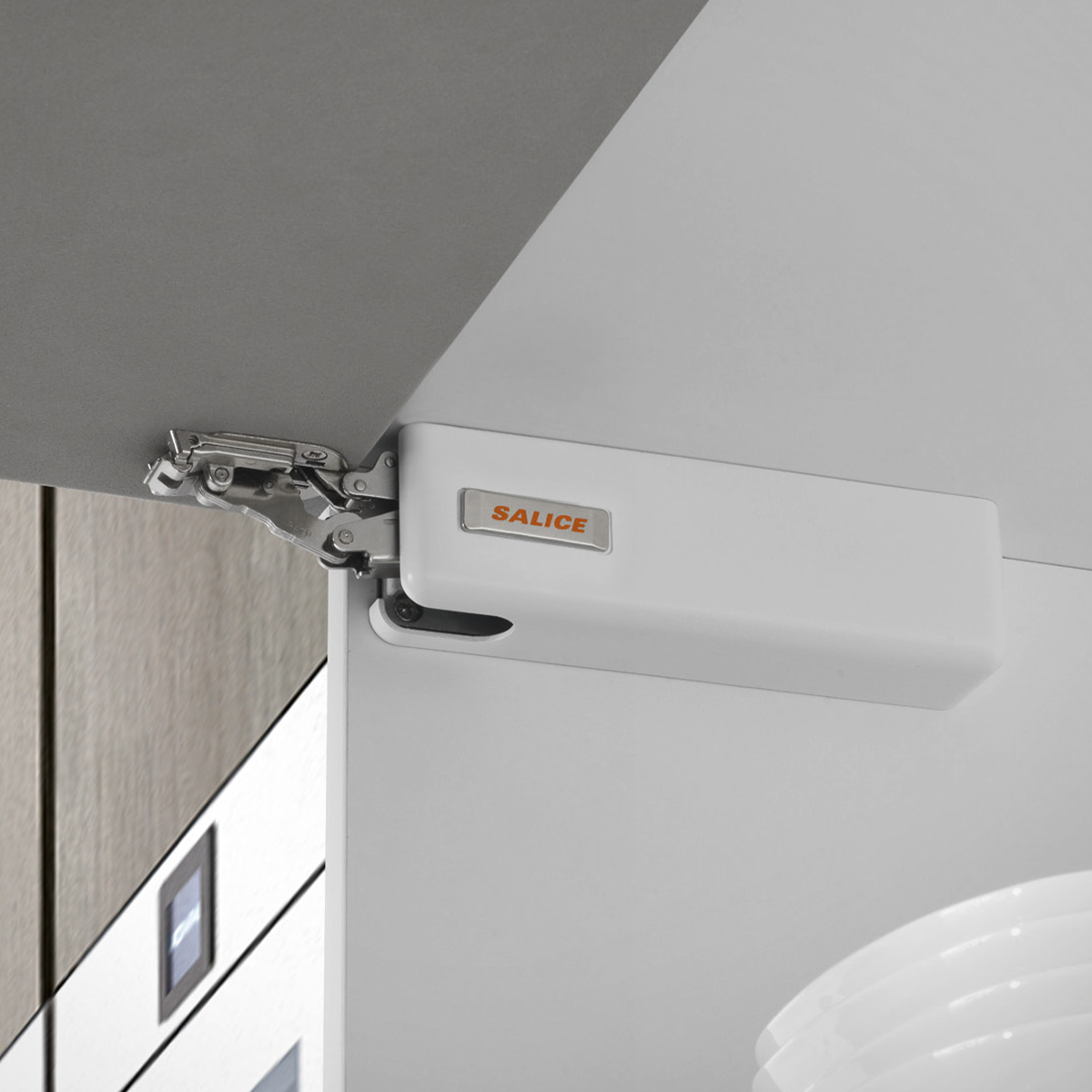 The system offers flexible fixing options, whether on the cabinet side or top panel, making it adaptable to various configurations. Installation is quick and secure with the automatic snap-in slide, while the calibrated three-way adjustment and tuneable spring allow precise alignment and reliable performance across doors of different weights.